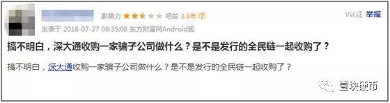 不过,对于这项收购,也有股民却表达了不一样的看法,“搞不明白,深大通收购一家骗子公司做什么?是不是发行的全民链一起收购了?”
