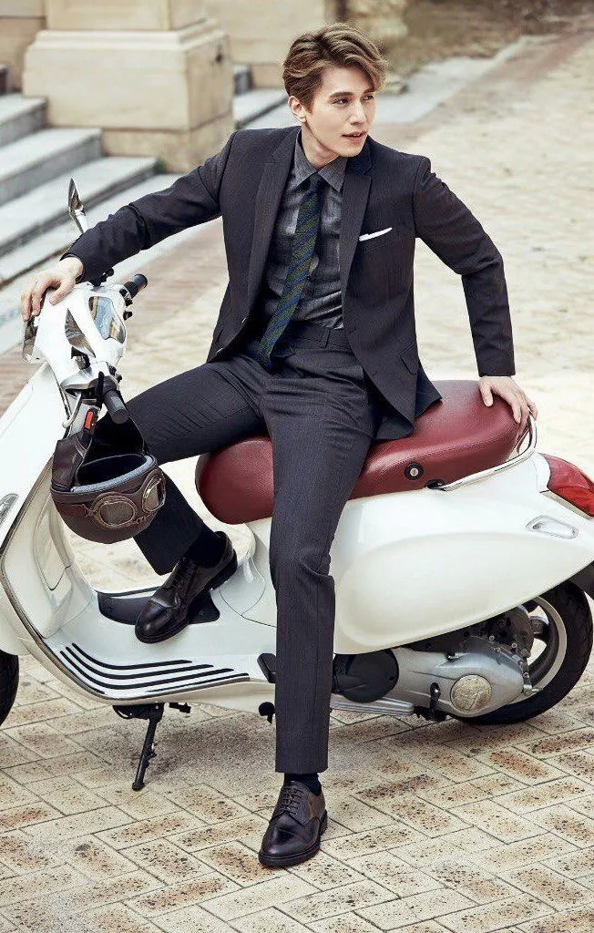 而穿上笔挺西裤的他立马变身成为拥有着长腿的公司总裁。