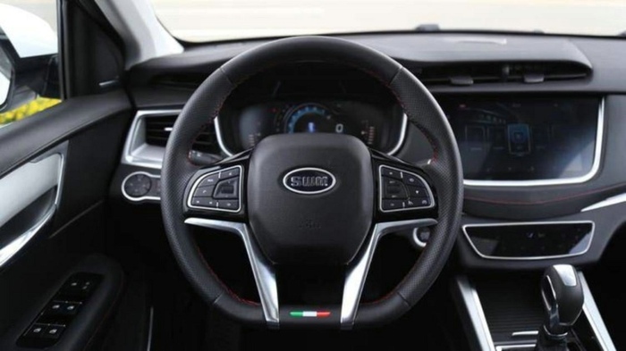 大面积黑红缝线搭配,也表现出了一丝意式风格,平底方向盘加入了银色装饰,底部还有意大利三色旗的小标,多功能按键可以控制媒体,蓝牙电话,定速巡航等功能,新车在用料和做工上整体表现让人满意。但是副驾空调出风口下方那个质感极差的“SWM”标识实在掉价,一个小细节毁了这台车还不错的中控设计。