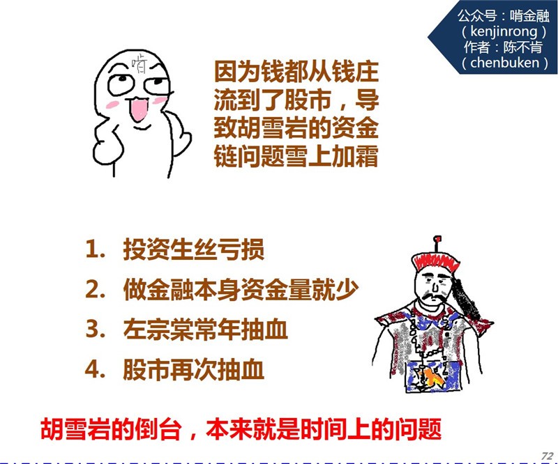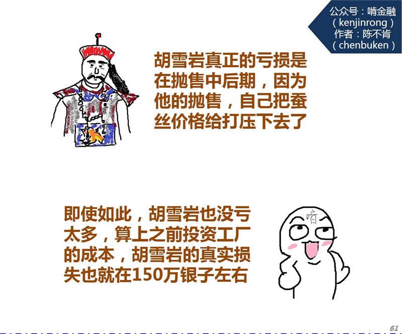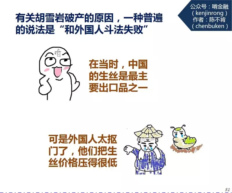 大金融家胡雪岩破产的真正原因其实并不仅仅是因为他在与洋商的生丝大战中亏了本,核心资本有限、大靠山左宗棠常年抽血、新兴的股市导致钱庄资金外流,这些因素共同导致了他资金链的断裂。