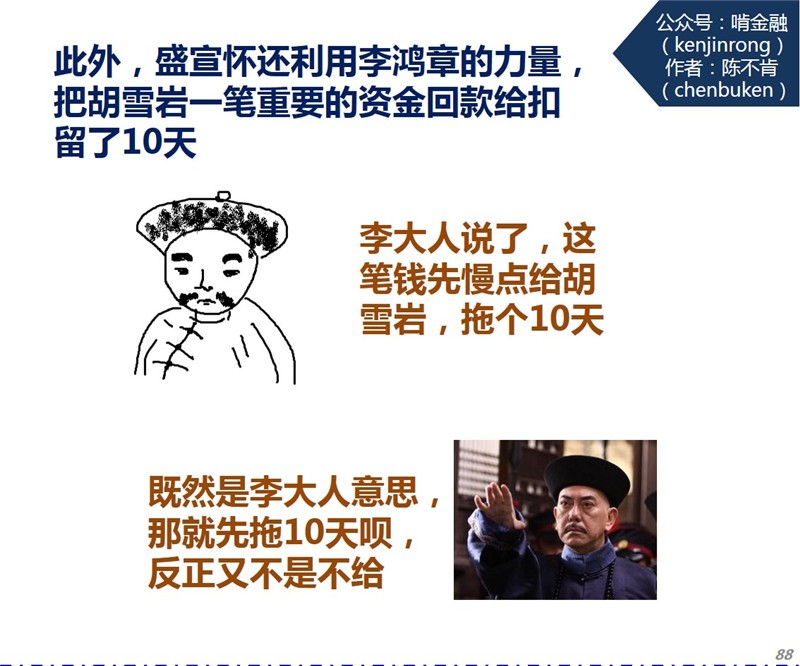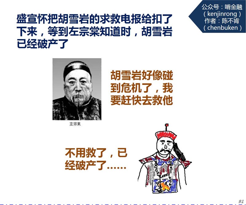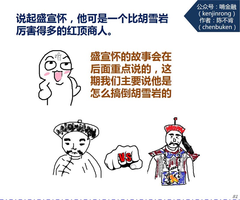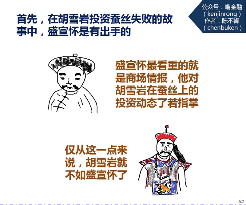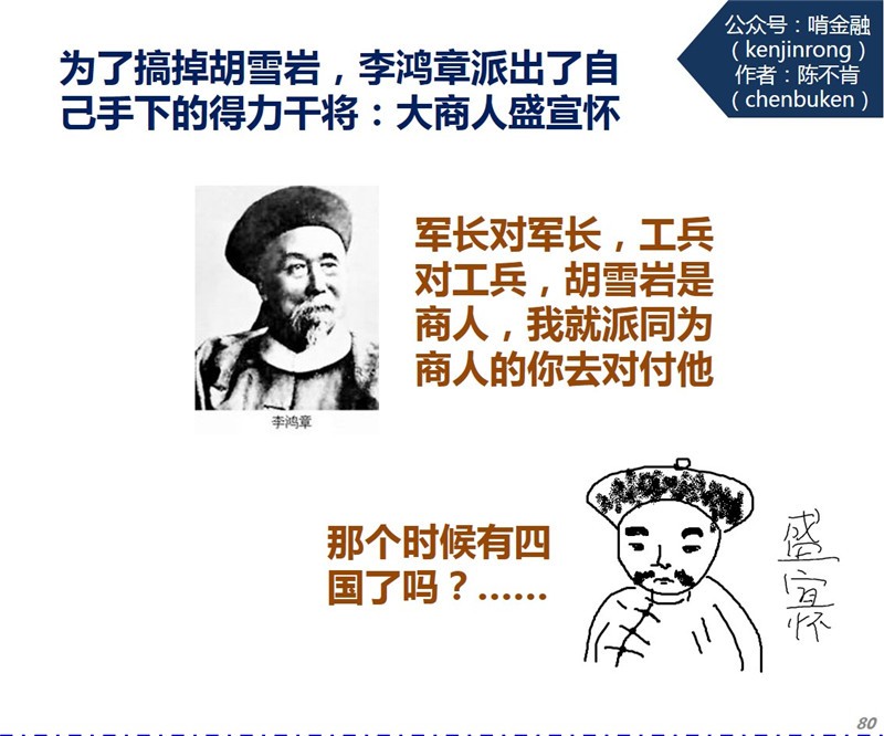 盛宣怀后台比胡雪岩更硬,比他更有打商战的意识,而且产业遍布各个行业、尤其是当时的信息系统电报行业。