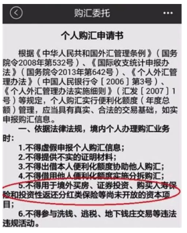 与此同时,为配合新办法进行相应的管理,自2017年1月1日起,所有国内的朋友不论是去银行柜台,还是通过网银等渠道换汇,都需要填写一份《个人购汇申请书》,并注明所换外汇的使用目的与使用时间。值的注意的是,新《条例》中明确规定,个人购汇不得用于境外买房或证券投资行为。