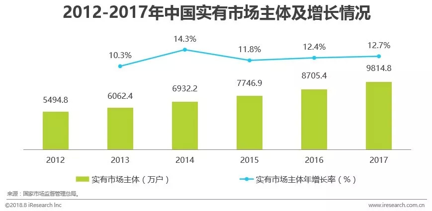 通讯云服务因具备按需付费、弹性扩展的特性,可以触达更广泛的客户群体。截至2017年年底,我国实有市场主体达到9814.8万户,同比增长12.7%。稳定增长的市场主体数量为通讯云服务带来广阔的市场空间。