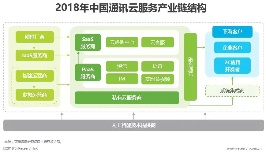 电信运营商和IaaS服务为基础资源,客户覆盖企业与开发者