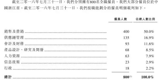 再来看江南布衣,截至到2016年7月底,江南布衣共有员工800人,一半为销售,仅23人为信息技术方向。截止到2017年底,江南布衣员工人数上升至930人。