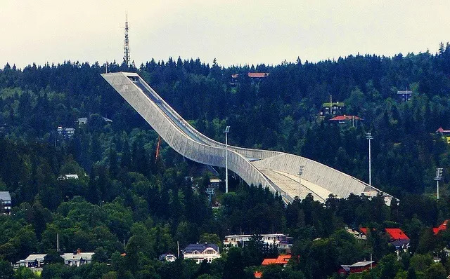 霍尔门科伦滑雪跳台,位于奥斯陆西北的霍尔门科伦街区,跳雪台上为海拔471米的展望台,可以远眺奥斯陆的街景、峡湾风光和周边的茂密森林。