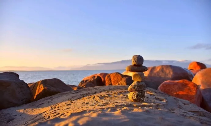 此处可欣赏宁静的水面和远处的雪山,傍晚时分的日落景色特别美丽。