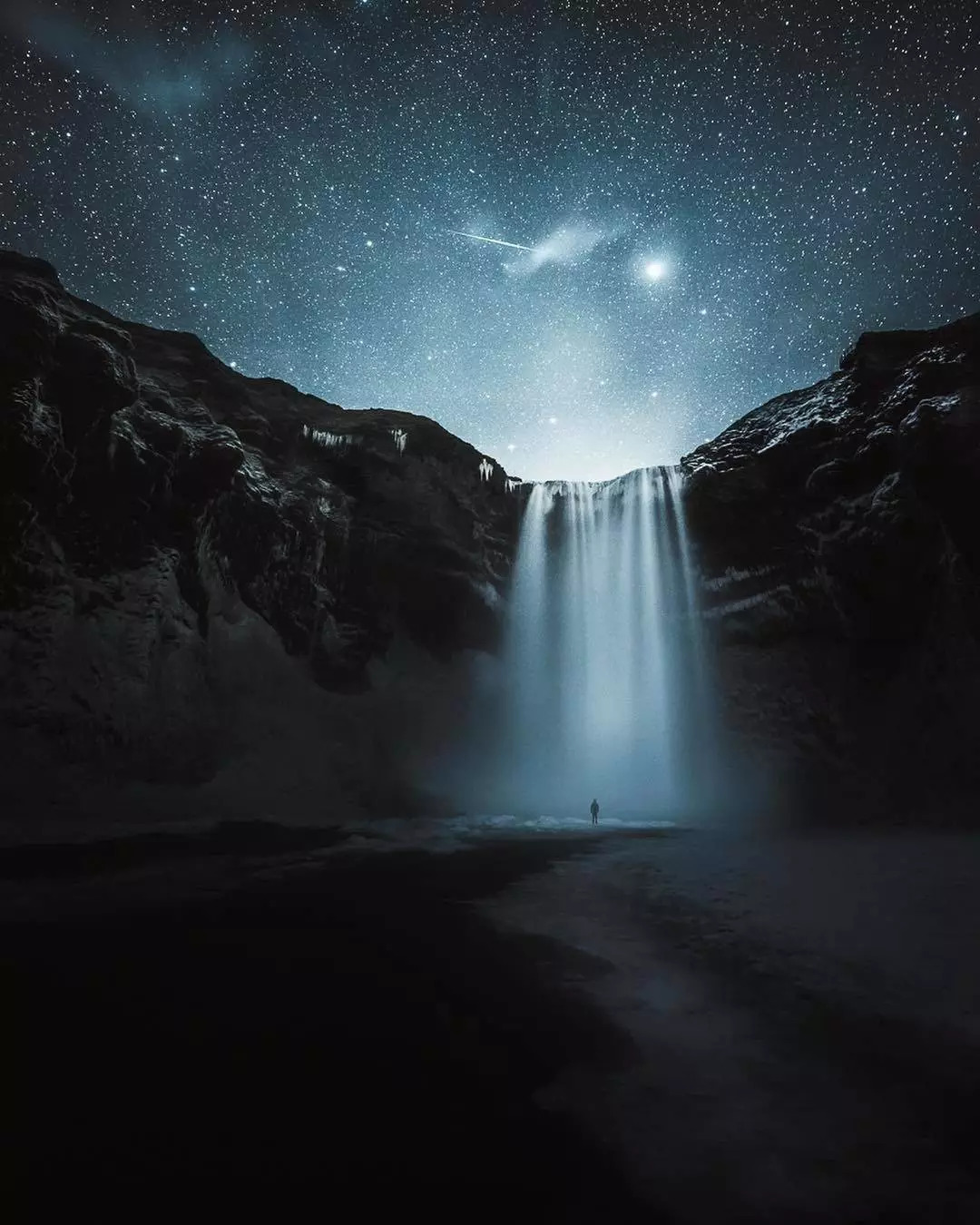 冰岛极光与瀑布 Photo by Mikko Lagerstedt