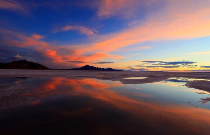 这片盐滩曾经是一片巨大而古老的冰川盐湖,几万年前,博纳维尔湖(Lake Bonneville)覆盖着犹他州的大部分地区。