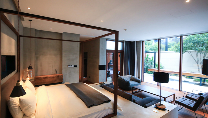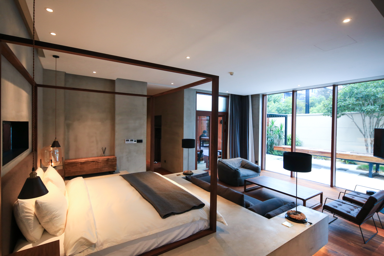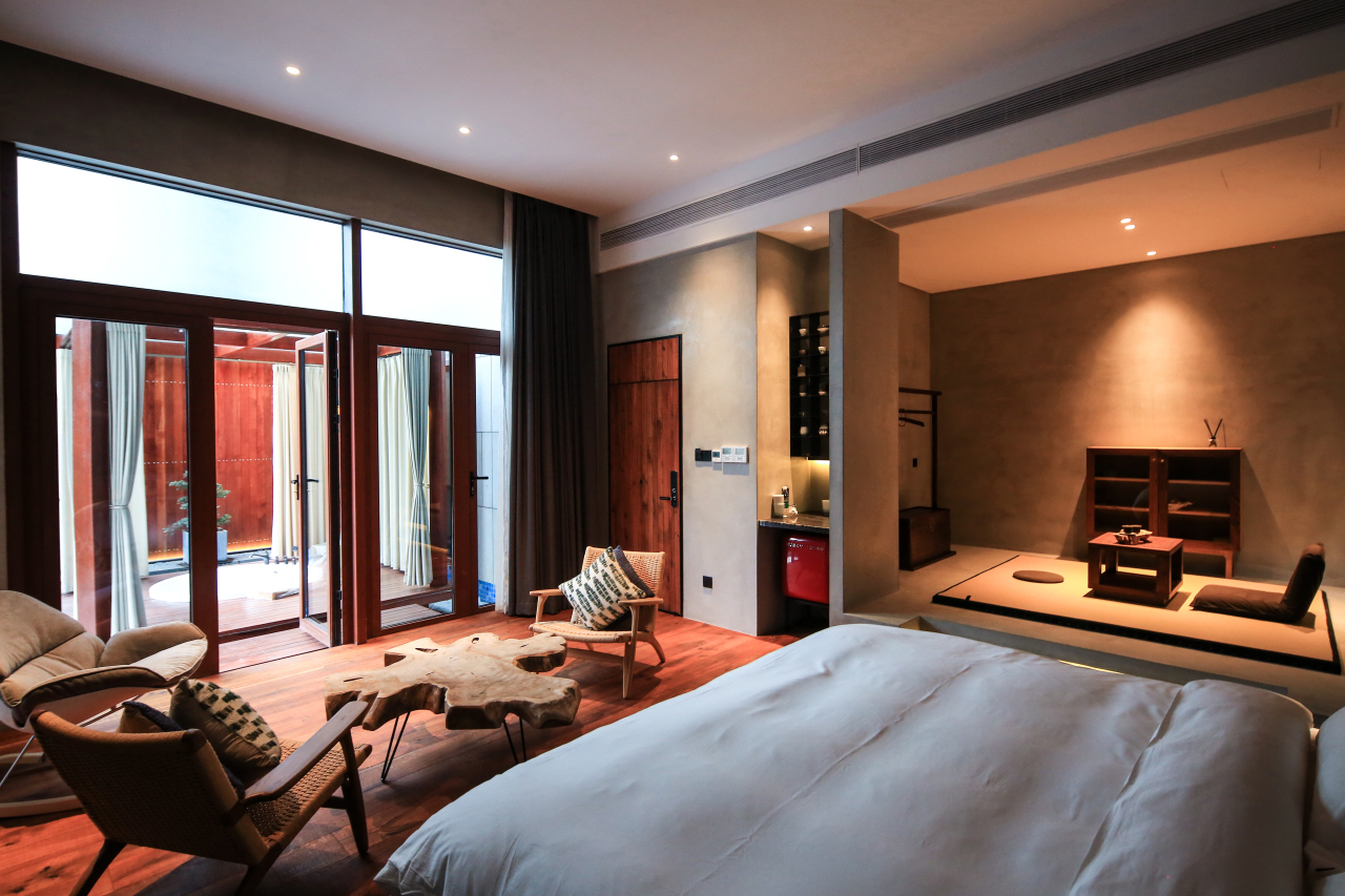 西溪素上艺术酒店仅有15间客房,这种小体量在设计酒店中并不罕见,而6种丰富的房型选择,却是同类酒店中的经典:一楼私享空间的庭院房,二三楼观景露台房,以及为亲子量身打造的豪华景观房。