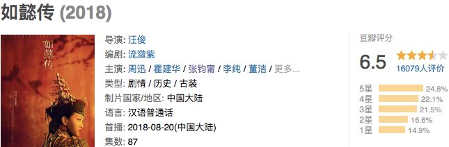一口气放了8集,《如懿传》开画评分只有6.7,现在跌到6.5。