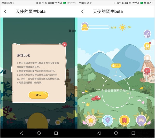 在2天后,ofo又玩了一次跨界,推出了一款名为《 天使的蛋生 beta》的内置小游戏。这款游戏的核心内容非常简单,就是通过骑行单车或者购买月卡获得“光能”,再使用这种资源提升天使的等级或完成各类任务。而这款游戏应该是不具备盈利能力,因为它没有直接充值的入口,官方也表示,这款小游戏模块主要是为了增强用户粘性,当然我们也可以理解为,增强用户购买月卡的“粘性”。