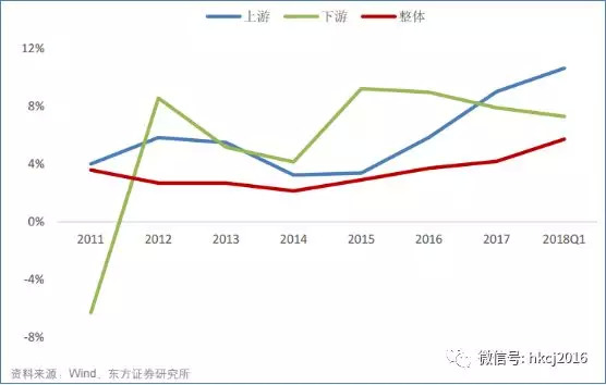 图4:化工业上、下游与整体净利润统计(WIND 东方证券)