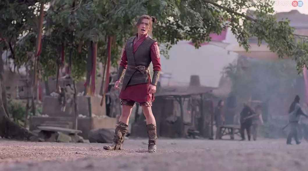 身为九天太清宫宫主,一出场自带树叶、尘土的五毛特效不说,手上拿的居然还是5元店的同款塑料剑。一身毫无仙气可言的钢片组合铠甲,特写镜头下,编织袋式的衣服亮瞎了我的眼睛。