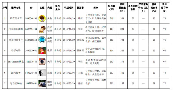该公司运营的账号包括"鲜衣美食君“、”全球娱乐趣事“、”instagram“等等,10万+爆款文章是常事,几大账号粉丝数都在百万级,粉丝留存率很多都在70%-80%。