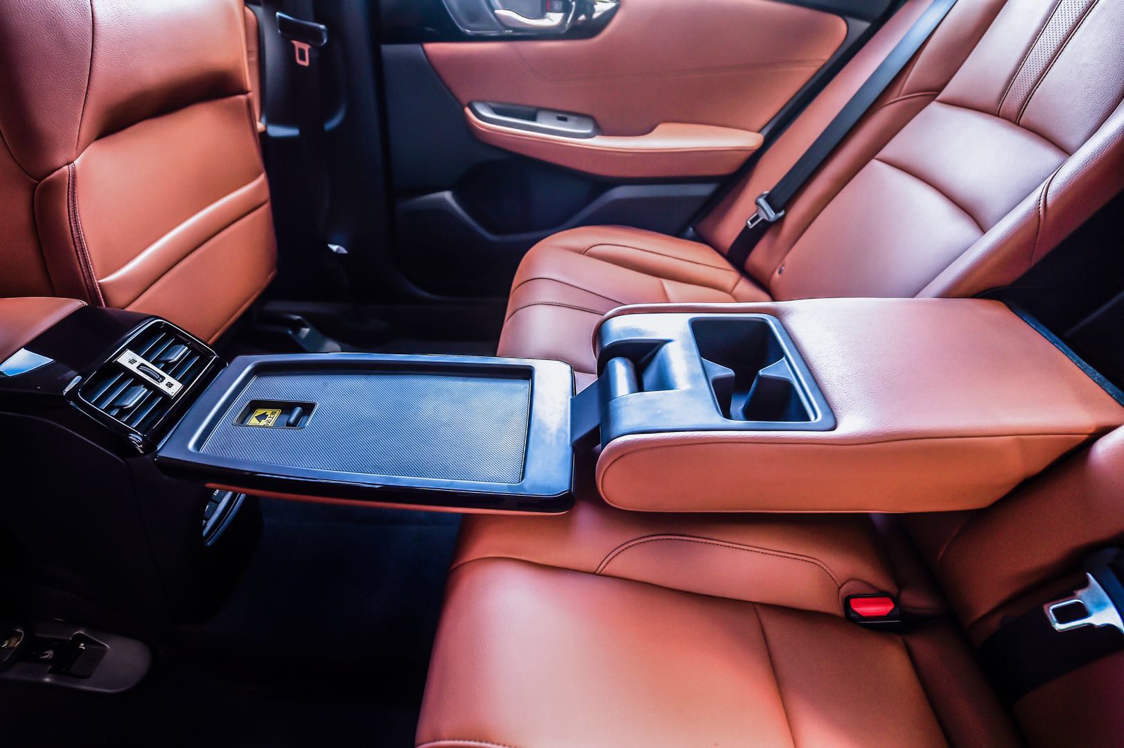 内装值得称道的部分有两个:第一是后排中央扶手箱倒下后的可翻折桌板,带防滑垫且可锁止的桌板可以在不影响后排杯架使用的前提下容纳手机、IPAD和纸巾等杂物;第二个是直通后备厢的隐藏通道,取放物品不用下车就很便捷。