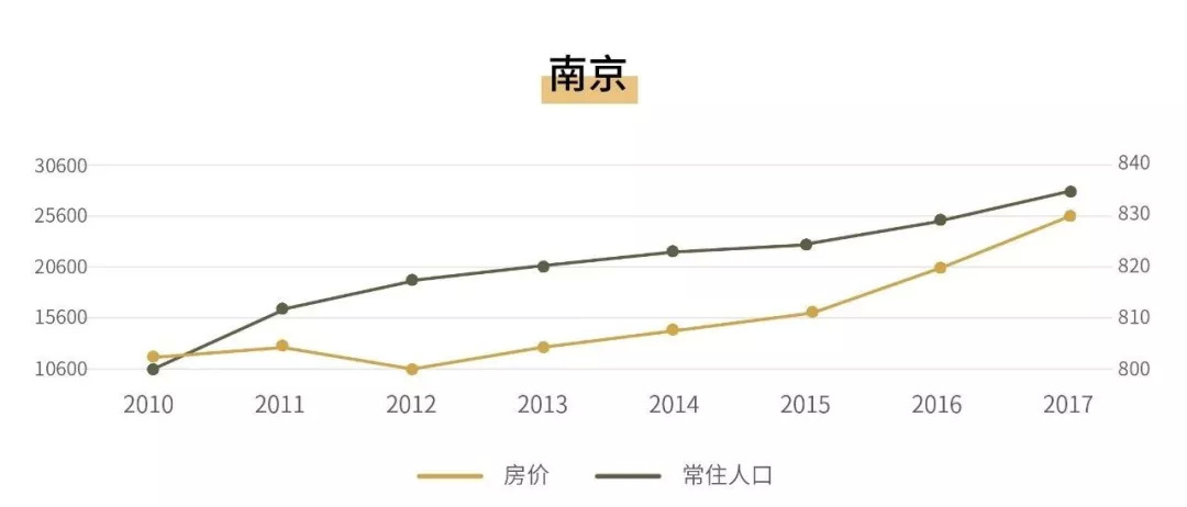 南京在18年宣布给予来当地面试的应届毕业生人均1000元补贴,旨在扩大对高校毕业生的吸引力。高校毕业生对城市的选择更多会注重新兴产业的发展,在此前提下南京作为科研强市,相比于苏州以第二产业为主的产业结构反而具有一定的人才吸引优势。且南京自身作为文化古都,环境优美历史悠久,软实力优越。可以想见,保持自身产业优势与发展脚步的南京,未来的人才吸引力会逐步扩大,而房价的增长潜力也会十分巨大。