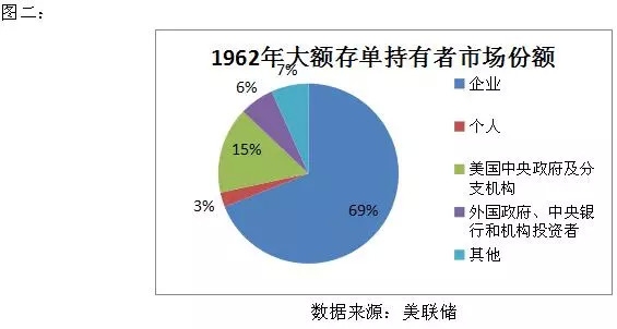 与此同时,企业纷纷将投资方向转向银行存款,成为大额存单的最多持有者,持有金额高达38.51亿美元,占大额存单市场份额的69%(如图二所示)。其中,面额在1亿美元以上的存单为21.21亿美元占CD份额的55.1%。