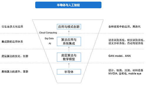 人工智能底层算法与数学模型的优化创新离不开半导体的发展,而人工智能发展过程中涉及到的算法应用、系统集成、模式创新等环节,又以底层算法与数学模型为基础。因此,半导体与人工智能有着密不可分的关系。