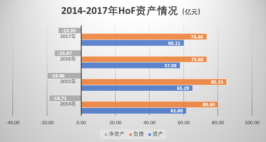 外部因素叠加公司自身的盈利能力,让HoF步步维艰。2014至2017年,HoF的资产规模连续四年为负,破产成为最终选择。