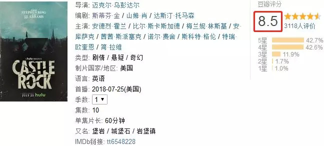斯蒂芬·金和J·J·艾布拉姆斯的强强组合,再加上美剧届实力新秀Hulu的鼎力支持,《城堡岩》开画封神几乎没有任何问题。