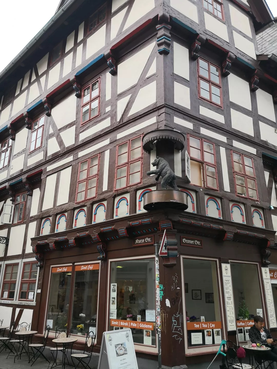 位于德国中部的哥廷根在公元十一至十二世纪间建置,是中世纪德国汉莎贸易联盟的成员。老城区许多教堂和古老建筑,均保持着中世纪遗风。最具特色的是桁架木屋。红瓦屋顶,由木桁条呈直角和斜线搭出房架,漆成黑色、深红色、深绿色、深褐色,间隔起雪白的墙面。木桁条屋檐部分,绘着五颜六色的圣经或民间故事图案,装饰着千奇百怪的人物或动物浮雕。一条条细长的巷子,铺着鹅卵石,两排鳞次栉比,高高低低,歪歪斜斜,都是这样的“费赫威克木屋”(Fachwerk,德语桁架木屋),煞是好看。哥廷根有一条以“黑熊酒肆”打头的小巷,全都是这样的木屋。而附近方圆五六十公里的五个中世纪小城均以小木屋举世闻名,现在正在申报联合国世界文化遗产。