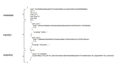 如图3.3所示,交易有三个部分,一些元数据,一系列输入和一系列输出。