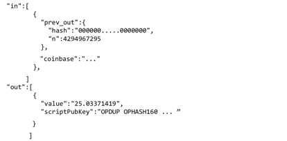 一个coinbase交易创造新的硬币。它不会兑换以前的输出,且它有一个空的哈希指针来表示这一点。它具有可以包含任意数据的coinbase参数。Coinbase的价值是区块奖励加上此区块中包含的所有交易费用。