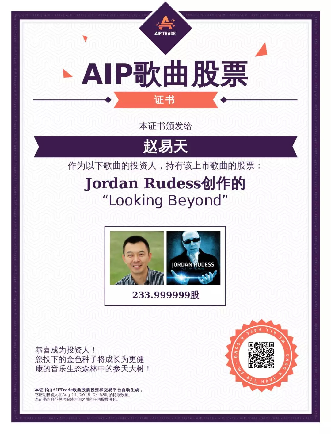 2015年赵易天和他的团队做了一个名为artistco.com的互联网平台,音乐人可以在平台上开通自己的账户,把自己的作品放上去,并进行自主定价,全球任何的乐迷可以直接把钱付给音乐人,并跟音乐人进行互动。经过一年的测试,赵易天发现虽然效果还可以,但是平台的推广成本太高,由于每首歌的收益很低,帮助音乐人获得收益的速度也不是很快。经过这几年的思考以及和众多音乐人的反复讨论,2017年底CME创立了新的品牌:AIP音交所 (www.aiptrade.com)。