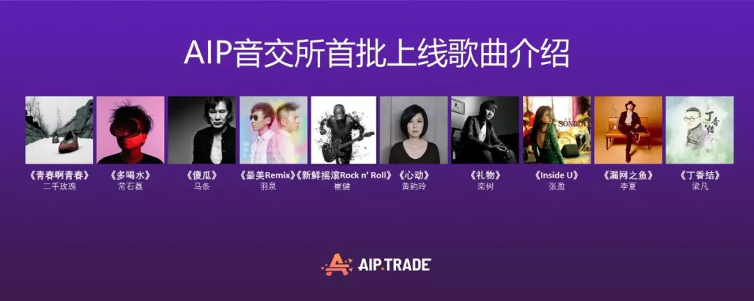 8月16日,全球音交所(AIP.trade)区块链应用中国大陆地区内测发布会在北京举办。发布会上,主办方CME国际与网易云音乐、华乐成盟现场宣布成为战略合作伙伴。此外,在刘欢、崔健、谭盾、羽泉等音乐人的号召下,张亚东、小柯、栾树、黄韵玲、钟兴民、常石磊、二手玫瑰乐队、马条、李夏、张盈、陈鸿宇、梁凡等10多位知名音乐人已经成为AIP音交所的首批合作者。目前,在音交所平台发布的歌曲包括崔健的《新鲜摇滚Rock n' Roll》新舞台现场版,黄韵玲的《心动》新录音室现场版,羽泉的《最美》荷兰DJ Shook的remix版。