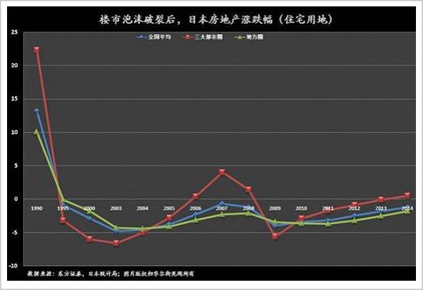 1990年,为了抑制不断膨胀的房地产泡沫,日本央行在慌乱中将银行准备金利率猛然提升至6%。这就像一把尖刀,一下子刺破了泡沫。日本楼市开始持续暴跌,三大都市圈(东京、大阪、名古屋)无一幸免,东京房价更是在3个月内暴跌65%。