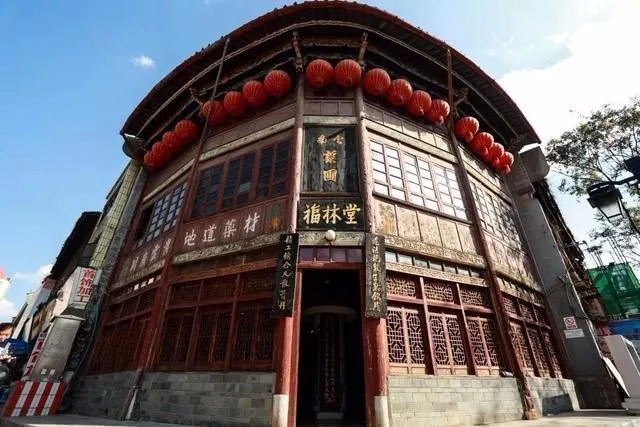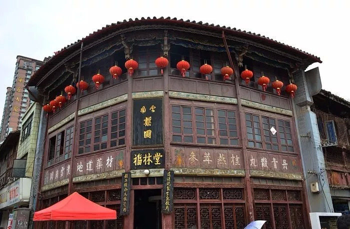 福林堂坐落于昆明市光华街31号,占地306.7平方米,始创于咸丰年(1857年),距今已有百余年的历史,是云南现存最古老的药店。整栋三层楼系土木结构,独特的伞状八面铺面,式样古朴典雅、雕梁栋画、有精心雕塑的牡丹朝阳、二龙戏凤、鲤鱼翻身的封橼,显得一派古香古色。在政府和公司的大力保护下,建筑风貌和内部格局仍保持着原有特色。