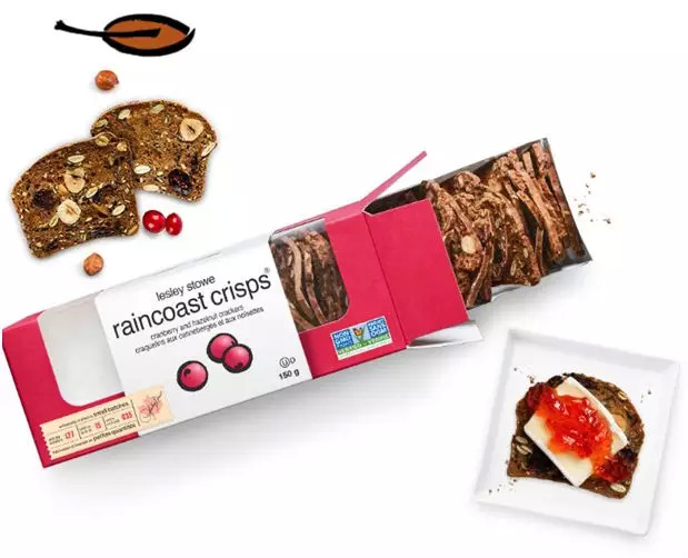Raincoast Crisps 脆片系列是Lesley Stowe Fine Foods中最经典的一条食品线,这个支线下一共有七种口味的产品,“无花果橄榄油口味”是其中之一。在官方给出的搭配指南上,这款薄饼可单独吃;也可做下酒餐盘,与奶酪香肠搭配;还可蘸着鹰嘴豆泥和各色蔬菜泥做的酱吃;当然,脑洞大一点的,甚至可以做冰激凌三明治,里面放入自选口味的冰激凌,用两片饼干夹起来吃。