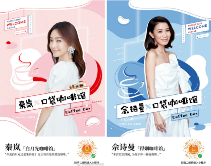 正值《延禧攻略》热映,连咖啡索性请来“富察皇后”秦岚和“娴妃继后”佘诗曼到“口袋咖啡馆”做老板,分别开出了“白月光咖啡馆”和“得娴咖啡馆”,招揽顾客。还有这个“音璎嘤咖啡馆”人物形象和布置都让人秒回《延禧攻略》颇受欢迎。