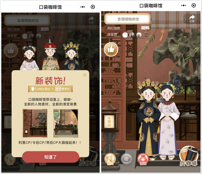 此外,大家还可以用“延禧攻略”特别配饰DIY虚拟咖啡馆,让人想起了换装游戏啊,有没有?