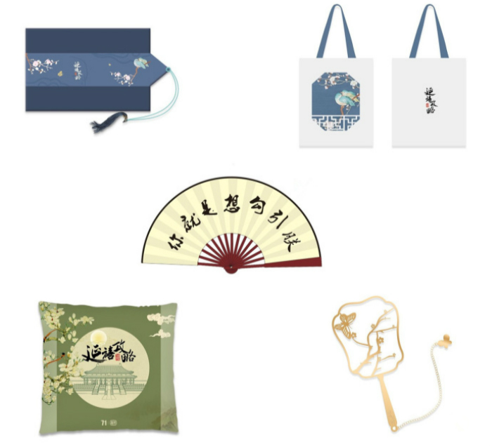 《延禧攻略》开播首日,官方打头阵,推出了精美的抱枕、笔袋、耳环、书签、折扇和帆布包等周边产品。官方的这个榜样很走心,一看就是早有“预谋”。