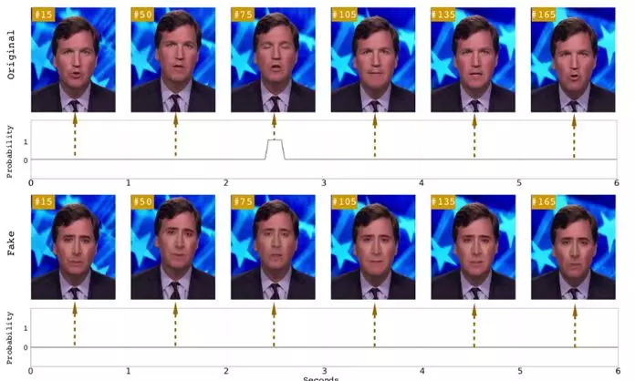 具体来说,Deepfake算法根据馈送的图像创建视频,虽然比较准确,但人工智能始终无法完美再现人类自然产生的所有生理信号。人类通常每两到三秒就会眨一次眼。而通过照片逐帧合成训练生成的视频,会破坏这些正常的生理行为特征。