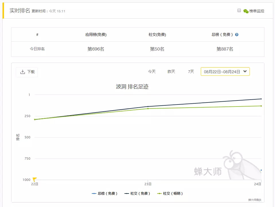 虽说背靠腾讯,但从下载量来看波洞星球的数据并不亮眼,不管是在腾讯自家的应用宝还是上线不久的 App Store 上 ,波洞 app 排名基本都在其分类排行的五十名之外,一点都不像是个拥有3500 万月活的产品。