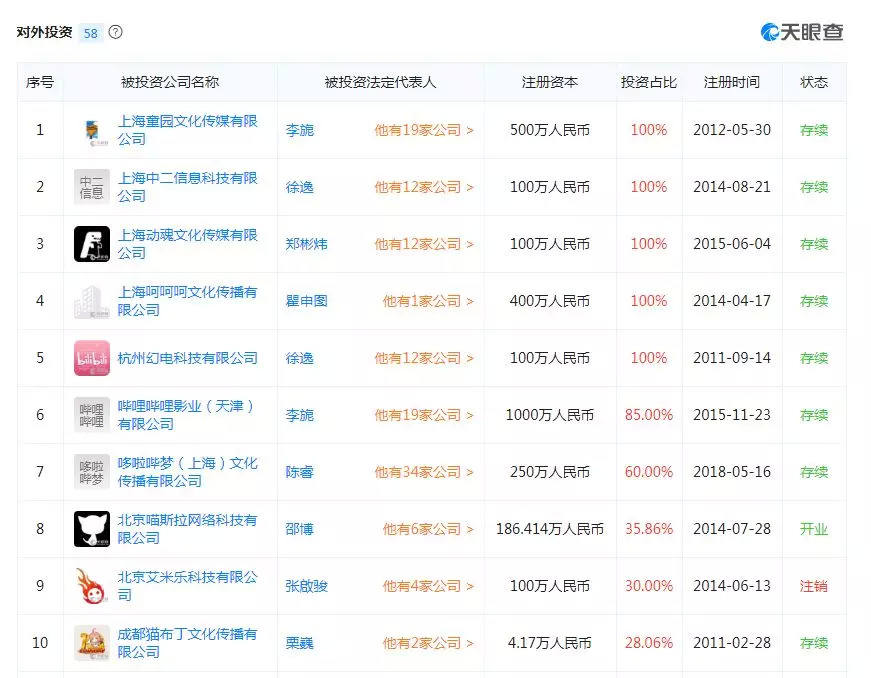 尽管 B 站背后的上海幻电信息科技有限公司也投资了 58 家公司(天眼查数据),试图打通二次元产业的上下游,但腾讯的波洞星球显然在产业链的把控上更具优势。