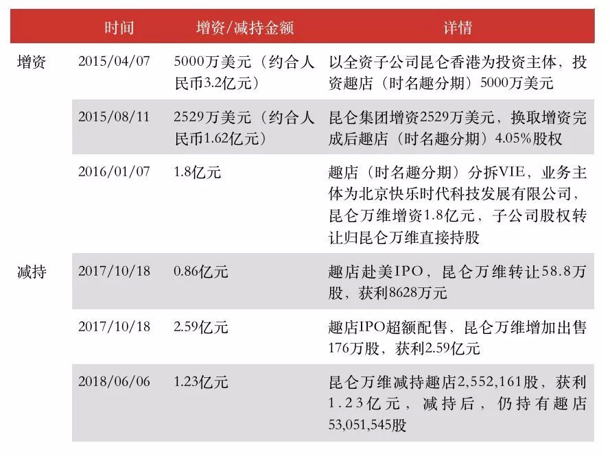昆仑万维在趣店上市之前,曾三次增资趣店,而在趣店上市之后,开始减持,详情如下: