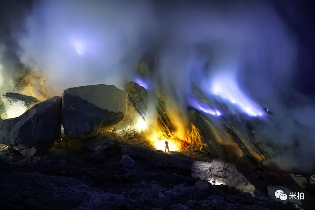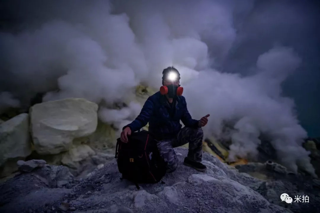“然后拍宜珍火山是最危险的一次经历。当时从凌晨12点开始爬山,爬了将近4个小时才到。由于山上没有路灯,头灯也比较暗,所以很难保证前方道路的安全性。特别是从火山口下到硫磺喷发的地方时,只要风向一转变,整个火山口里全是有毒的硫磺气体。加上我们头上的防毒面具又特别简陋,不是有氧气的那种,所以后来回想起来,感觉差点把命都丢了……”