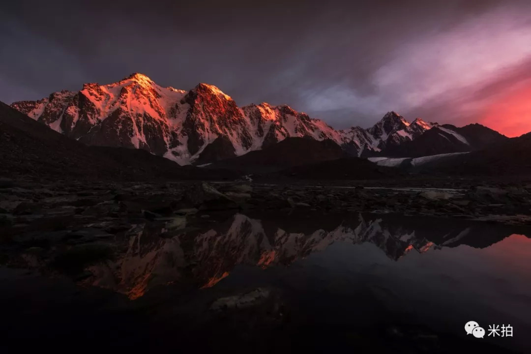 “上个月进入新疆博格达峰拍摄,在山前山后营地各进行了6天拍摄,共计12天!每次需要背负户外装备和摄影设备徒步两天才能到达营地,在山里还遇到几次极端气候,所以拍摄还是十分困难的。每天都爬营地的各个山头寻找机位——拍摄日落、日出以及星空等,睡觉的时间也比较少,拍摄完成后还得徒步两天才能出山。总体来说虽然身体疲倦,但对摄影本身而言,是很满足的,是充满激情的!”