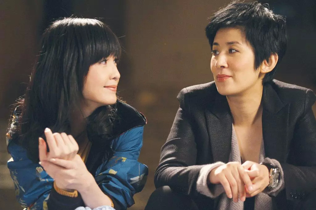 其实周慧敏在2010年重归影坛,演过部百合电影《得闲炒饭》,一向搞笑的吴君如演个帅T。