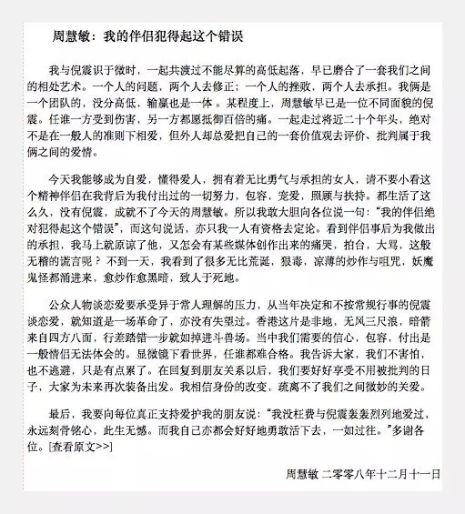 不仅如此,她钢琴十级又写的一手好散文,连当年和在一起20年的男友分手时的声明都写得很有水准,