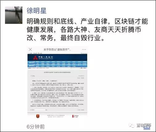 8月24日,针对“银保监会:防范以‘虚拟货币’、‘区块链’名义进行非法集资”的消息,OKcoin创始人徐明星发朋友圈表示:明确规则和底线,产业自律,区块链才能健康发展,各路大神,友商天天折腾币改、常务,最终自毁行业。
