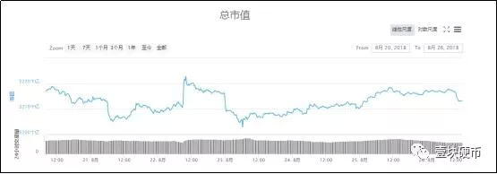 本周,根据CoinMarketCap数据,截止2018年8月26日,全球区块链资产市值为2132.56亿美元,较上周下降23.25亿美元;24小时成交量为94.4亿美元,较上周下降18.48亿美元。