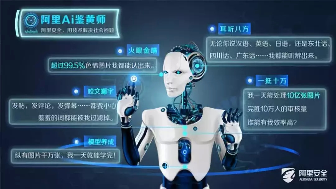 最近上线公测的阿里AI鉴黄语音反垃圾服务便是基于此理论,除识别色情图片、色情视频和色情文字外,涉黄语音也能通过AI鉴别了。为了让AI智能机器具备识别多国语言和多地方言的能力,事先需要有一个训练学习的过程,对此阿里安全部产品专家念夏表示,“可以把它想象成一个小孩,需要不断喂养、训练、学习,它才具备这样的能力。”比如学习广东话,除了从第三方公司购买训练素材外,还使用阿里系统内的视频平台上的粤语电视剧,来训练机器人学习。