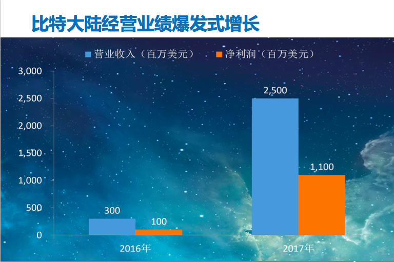 该融资材料中表示,一季度数字货币价格大幅下滑,会一定程度影响2018年第二季度的数据。但从第二季度开始,数字货币止跌并波动,矿机销售已经进入相对平稳期,所以2018年整体业绩增长依然有较大把握。2018年预计净利润20亿美元以上。