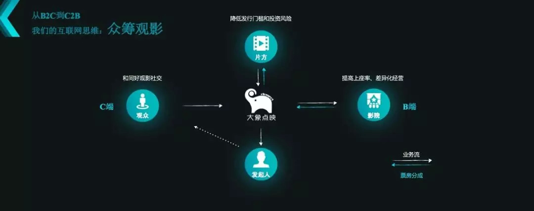 这位观众当时不会想到,三年过去,一个孕育自此番众筹点映的C2B长线放映平台——大象点映已经发展得初具规模了。