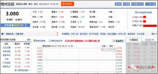 在停牌前,桐成控股的股价收在3.08港元,如果以公司总股本3.01亿来计算,总市值约为9.26亿港币。